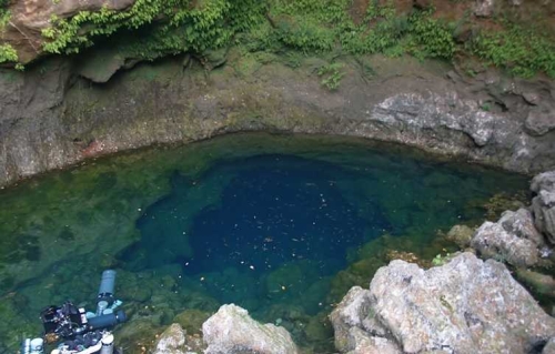 Wir verabschiedeten uns vom Team und tauchten schließlich in diese riesige Höhle ab.