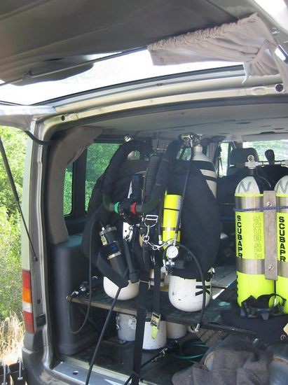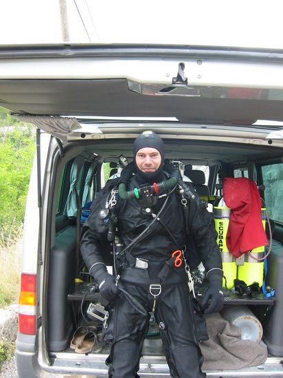 In der St.George ließen wir es auch gemütlich angehen und trafen hier eine grössere Horde Briten, die alle mit Sidemountequipment unterwegs waren. Wir entschlossen lediglich eine 80 cf Stage mit EAN 32 mitzunehmen und bei 125 bar auf der Stage zu drehen. Das Backgas in der D 12 griffen wir nicht an ,es war lediglich als Safetygas gedacht. Die Sicht war mit 4-5 m relativ bescheiden, so dass wir bei der Engstelle bei etwa 425 m umdrehten, auf dem Rückweg mussten wir die letzen 150 m an der Leine in Touch Contact raus, da Sicht maximal 30 cm betrug und unsere netten englischen Kollegen so frei waren, ihre Stagedepots in die Lehmbänke zu werfen und etwas eigenartig tarierten. Wir hatten dann auch die Nase irgendwie voll, da es dann am Pool etwas too much des guten wurde und machten wir uns zügig Richtung Carjac auf den Weg, den nächsten Tag hatten wir volles Programm an der Ressel geplant.