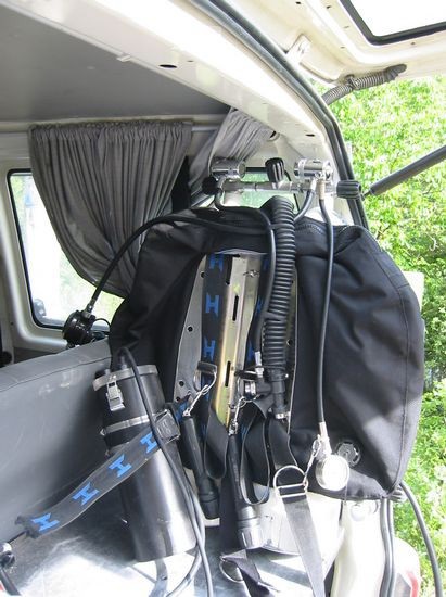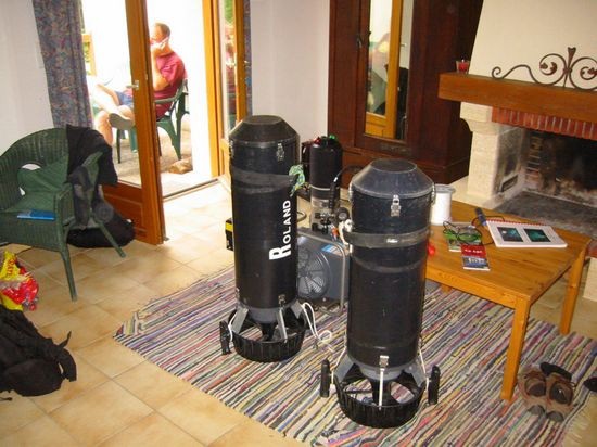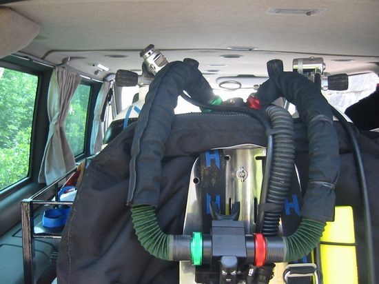 Roland plante diesen TG mit seinem RB 80 mit D 20 Bailoutflaschen am Frame und einer 80 cf Trimixstage, ich mit der D 18 als Back (Safety) Gas mit 250 bar Trimix 15/55 und insgesamt 3 x 80 cf Trimixstages mit 15/55. Daneben führten wir jeder noch 3 Dekogase in 80 cf Stages mit uns (Oxygen, 50/25, 35/35). Wir vereinbarten als Umkehrpunkt wenn die zweite Trimixstage bei Robin 125 bar erreicht. Wir waren beide mit jeweils einem Standard Gavin und hatten noch einen Standard Gavin als Backup dabei, den ich zog.