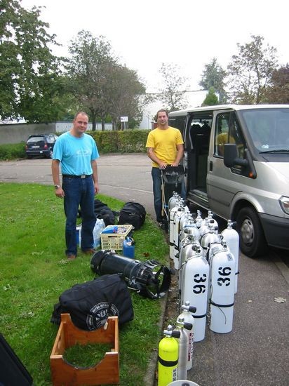 Ein paar Holländer die auch an der Ressel tauchten, fragten ob wir jetzt erst mal einen Setup TG machen um die Stages abzulegen… wir antworteten nein, das bringen wir alles auf einmal rein und gehen dann schön tauchen. Die Kollegen waren etwas irritiert.