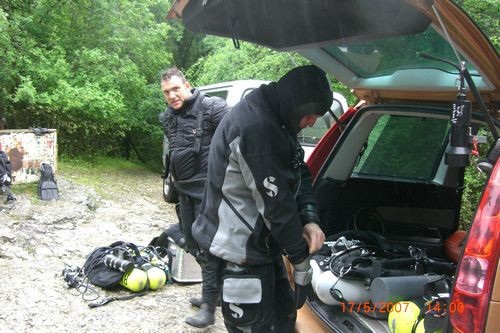 Somit planten Arne und Marc einen Scooter Tg im tiefen Teil der Ressel und Roland und ich fuhren mit dem geliehenen Auto von Paul an die Truffe. Wir sind mit gutem Beispiel vorangegangen und haben Arne und Marc erstmal beim Flaschenschleppen geholfen.