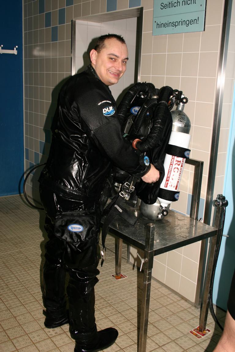 Im Hallenbad gingen dann zunächst alle die Checklisten und Prozeduren durch. Dabei war einem erfahrenen RB Taucher immer ein OC-ler oder RB-Beginner zugeteilt. Diesem wurden dann die Prozeduren in Präsentationsqualität vorgeführt und erklärt. So profitierten alle gleichermaßen vom ersten Teil der Poolsession – die einen lernten etwas neues, die anderen konnten am Feintuning ihrer Skills arbeiten.