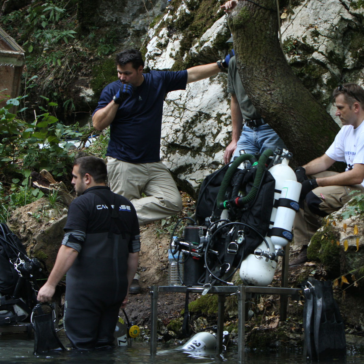 Am Abend besprachen wir die Ereignisse des Tages und den Plan für die restlichen Tage, es stand noch ein Treffen mit dem serbischen Minister für Umwelt bevor. Und wir hatten noch die Möglichkeit an einer weiteren, nicht erforschten Höhle zu tauchen – nicht ganz unkritisch, denn es ist bekannt, dass der Eingangsbereich im extrem trübem Wasser liegt – hier kann ausschließlich nur per Touch Kontakt zur Leine in den Pool getaucht werden. Zu allem Überfluss wird die Höhle speziell im Eingangsbereich auch noch so eng, dass ein Taucher mit einem größeren Gerät sofort stecken bleibt. Bei Null Sicht kein schöner Gedanke.