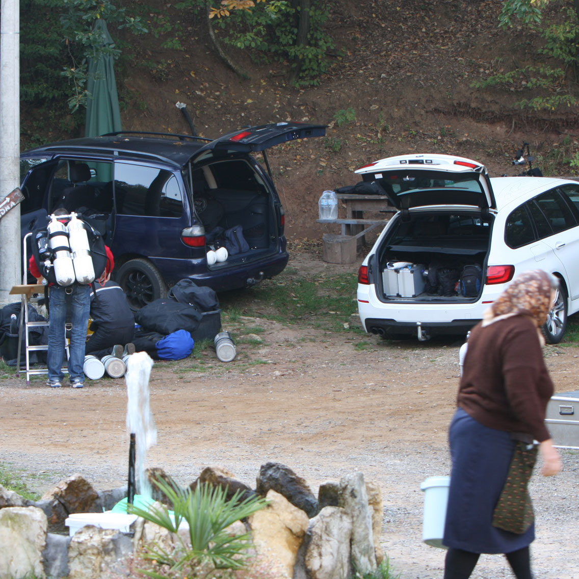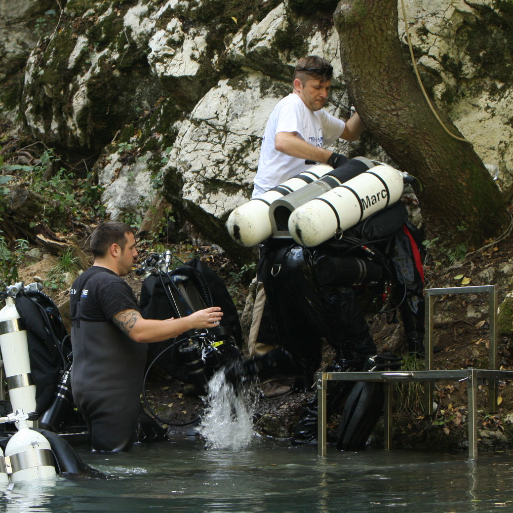 Der nächste Tag sah uns dann auf einer scheinbar endlosen Fahrt in die Region Pirot. Hier galt es einen Quellzulauf zu erforschen. Bedingt durch die örtlichen Gegebenheiten erreichten wir unseren Tauchplatz sehr spät. Dennoch stiegen Darko und Danny in die höhlentaucherisch jungfräuliche Quelle ein und verlegten die ersten Meter Leine!
