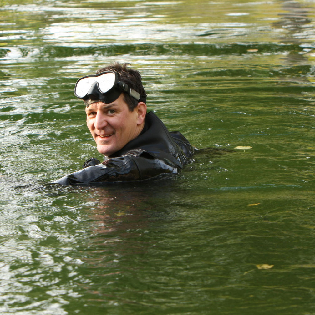 Das finale Auftauchen wird daher auch für die an Land gebliebenen Teammitglieder zu einer letzten Geduldsprobe, nach weiteren 35min. O2 auf den Tiefen 6,5,4,3 und zwei Meter streckt Tobias als erster den Kopf durch die Wasseroberfläche, kurz danach folge ich, begleitet von „Schutzengel“ Darko.Alle Mitglieder stehen mit einem breiten Grinsen am Ufer, ein kleiner Applaus heißt uns willkommen – ein voller Erfolg liegt hinter dem Team. Neben den Wetnotes-Nachrichten, die schon jeder kannte wurden wir jetzt mit Fragen bombardiert, wie ging es weiter? Wie tief wart ihr? Wie sieht es dort aus? In ausgelassener Stimmung haben wir haarklein unser Erlebtes wiedergegeben. Ein cooler Dive 😉