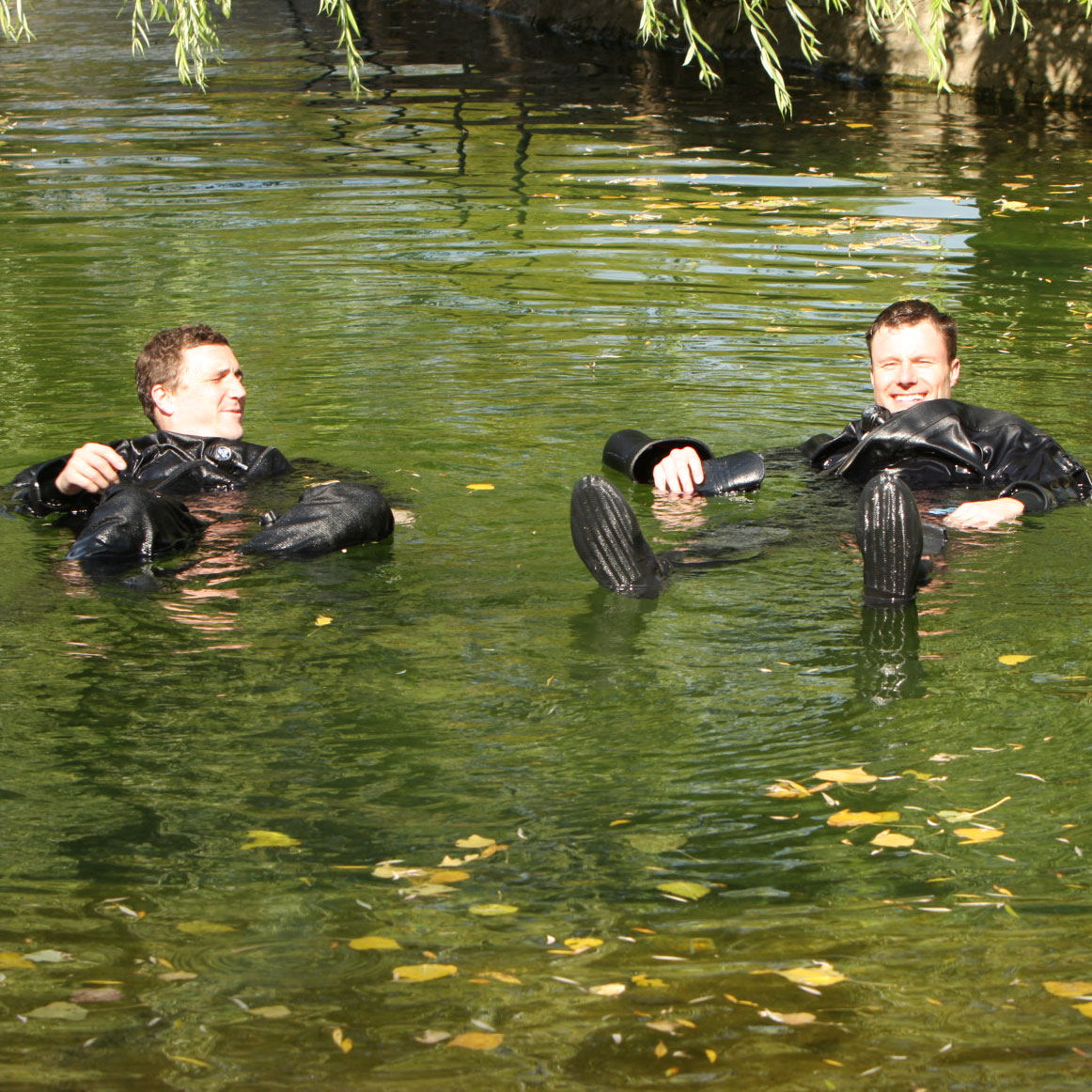 Trotzdem verpufften die Flossenschläge der beiden Taucher fast wirkungslos. Andreas und Marc sahen irgendwie wie zwei „Flugzeugträger“ aus.