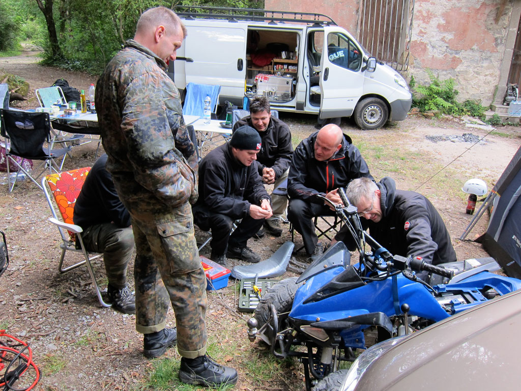 Der zweite Projekttag war von einer größeren Enttäuschung geprägt, der Abtransport konnte am Vortag nicht ganz abgeschlossen werden und so setzten wir die Arbeiten am frühen Morgen fort. Leider fiel das Quad bei dieser Aktion endgültig aus, der Motor sprang einfach nicht mehr an, später im Lager stellten wir fest, dass der Anlasser vollständig verkohlt war – unwiderruflicher Totalausfall, denn das Quad hat keinen Kickstarter…