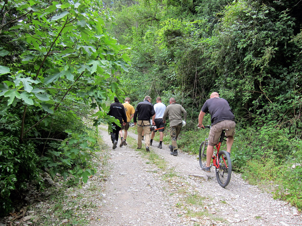 Während in den letzten Jahren gerade das Thema „Materialtransport via Seilbahn“ sehr viel Zeit in Anspruch nahm, haben wir in diesem Jahr eine eigens für das Projekt angefertigte Seilbahnkonstruktion verwendet. Wilke’s Vater hat sich die Lage vor Ort schildern lassen und hat aufgrund der Erzählungen und Videoaufzeichnungen zusammen mit Darko eine verbesserte Mittelstation gebaut – in diesem Jahr mussten wir erstmals die Transporttonne nicht an der Mittelstation umhängen – sondern konnten in eins durchfahren. Die Zeitersparnis war enorm!