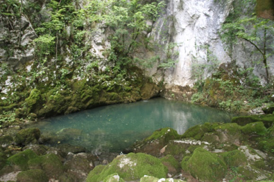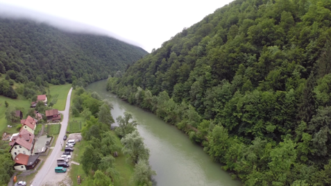 Da uns im Mittelmeerraum die Karstlandschaft und natürlich auch die Höhlen so faszinierten, haben wir uns diesmal nach Slowenien aufgemacht um eine Höhle zu vermessen. Florian hatte durch einen Kontakt zu den dort ansässigen slowenischen Höhlentauchern und einer Scouting Tour im Winter mit Ben die Bilpa-Höhle zum Ziel unseres Projektes gemacht. Am linken Kolpa-Ufer im Tal an der Grenze zu Kroatien und der Gemeinde Kostel liegen mehrere Karsthöhlen. Der slowenische Polyhistoriker Valvasor beschrieb vor allem die über den Höhlen liegende steile Felswand in Form eines Menschen- und Teufelskopfes und gab ihr den Namen „Wand des Echos“. Die Höhle besteht aus Höhlengängen, die auf verschiedenen Etagen liegen; die unterste ist noch aktiv. Der Eingang zur Trockenhöhle befindet sich in der Wand 30 m über dem Tal.