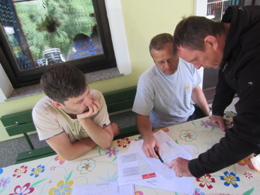 Die Trockenröhren mussten noch geriggt werden, die Helme mit Lampen bestückt; die Wäscheklammern für die Messpunkte beschriftet, die RBs vorbereitet, etc. Wilke machte sich wieder auf den Weg zurück; da er die Bodenplatte der Gegenlunge zu Hause liegengelassen hatte. Wir bekamen Besuch von Igor und Martin, unser slowenischer Kontakt, die uns noch einige Tipps geben konnten, da sie hier viele Höhlen kennen die wir uns noch die nächsten Tage ansehen wollten.
