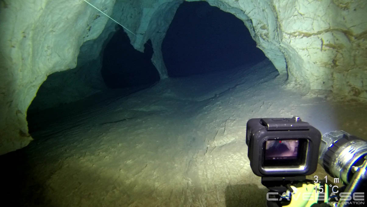 Nur wenn man eine Leiter vom höchsten Punkt zum S2 herab lässt, kann man die 5m hohe Wand mit oder ohne Tauchequipment überwinden und weiter zum Pool von S2 vordringen. Das klare Wasser wird sehr schnell durch das Anlegen der Ausrüstung trüb, erholt sich aber annehmbar wieder schnell. Des Weiteren sollte man auf die scharfkantigen Versturzfelsen im Wasser aufpassen.