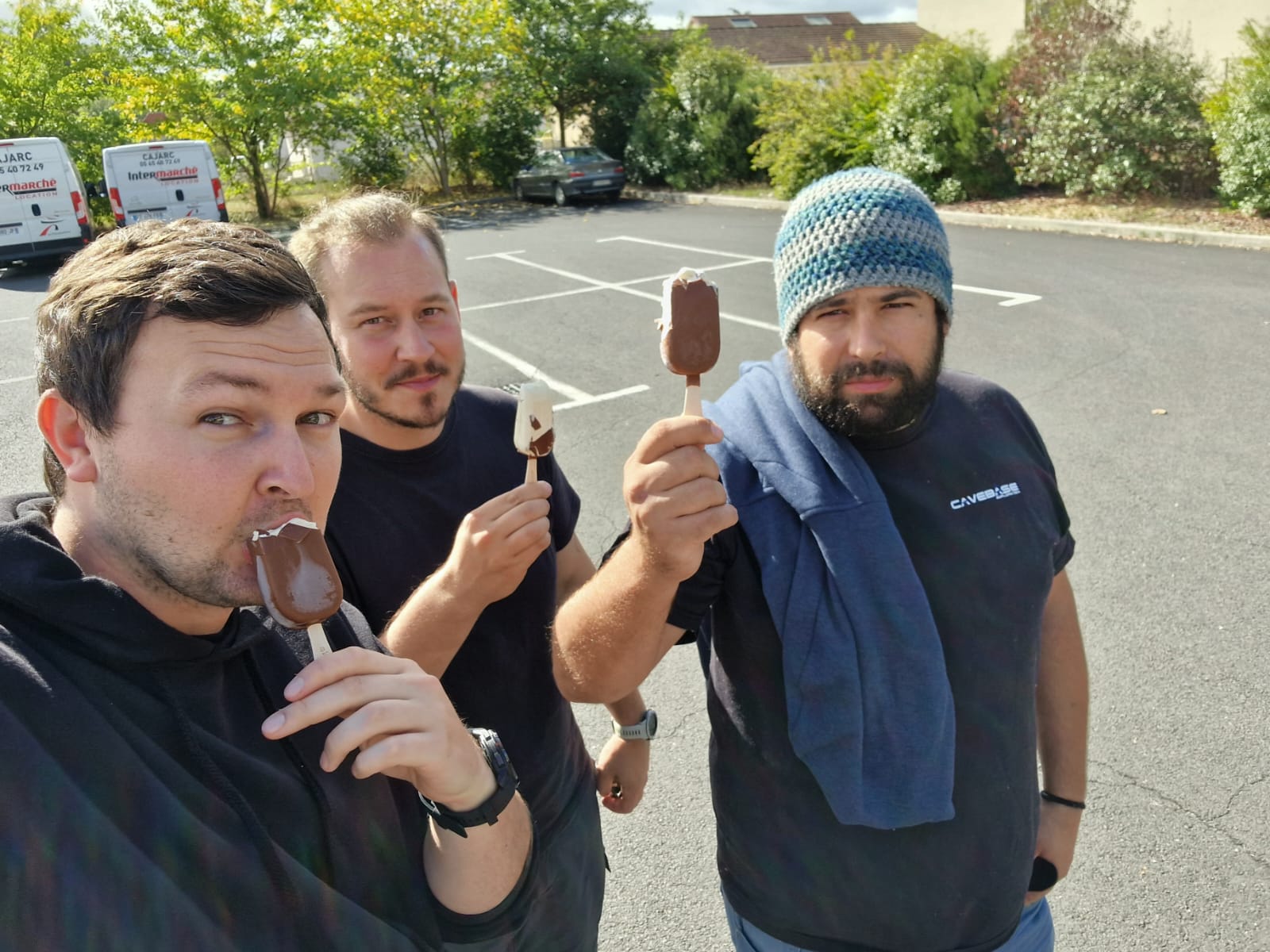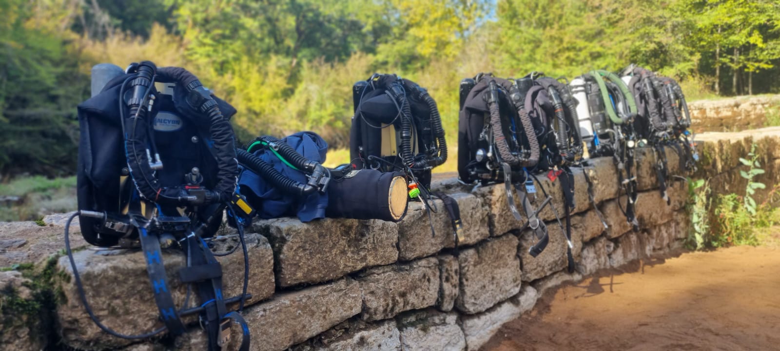 Am ersten Tag planten wir einen Eingewöhnungstauchgang zum Hasenmeyer-Messer in der Source de Landenouse. Ein Checkdive zum Eincruisen. Die ersten Meter waren leider noch etwas milchig und an scootern nicht zu denken. Nach dem obligatorischen ersten Stück der Landenouse machte die Höhle aber zum Glück auf und wir konnten die Scooter starten. Nach etwa 50 Minuten auf dem Trigger erreichten wir unser Ziel in 71m Tiefe: Das Messer von Jochen Hasenmeyer. Nach einer kurzen Abstimmung traten wir den Rückweg an. Durch das Auf und Ab hatte SteffenB zwischendurch kurz Probleme mit dem Druckausgleich, aber hat es dann doch noch geschafft und so sind wir nach 2 Stunden und 15 Minuten wieder im Pool aufgetaucht. Ein toller Start in die Woche.