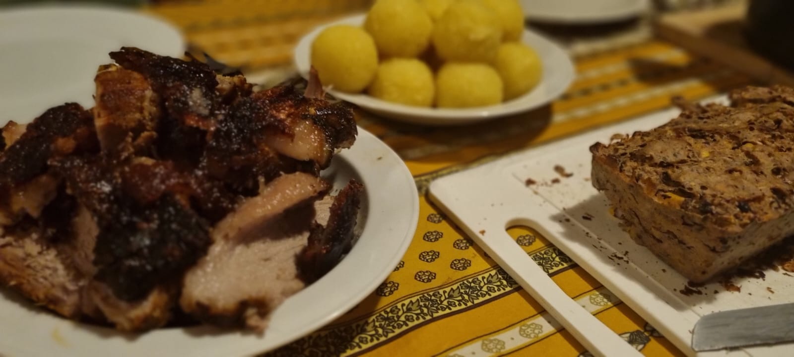 Abends gab es fränkischen Schweinebraten mit Blaukraut und Klöße, gebraten und gekocht von SteffenB. Für unsere vegetarischen Mädels einen vegetarischen Braten. Gesättigt begutachteten wir die Bilder des Tages und schmiedeten die Pläne für die kommenden Tage.